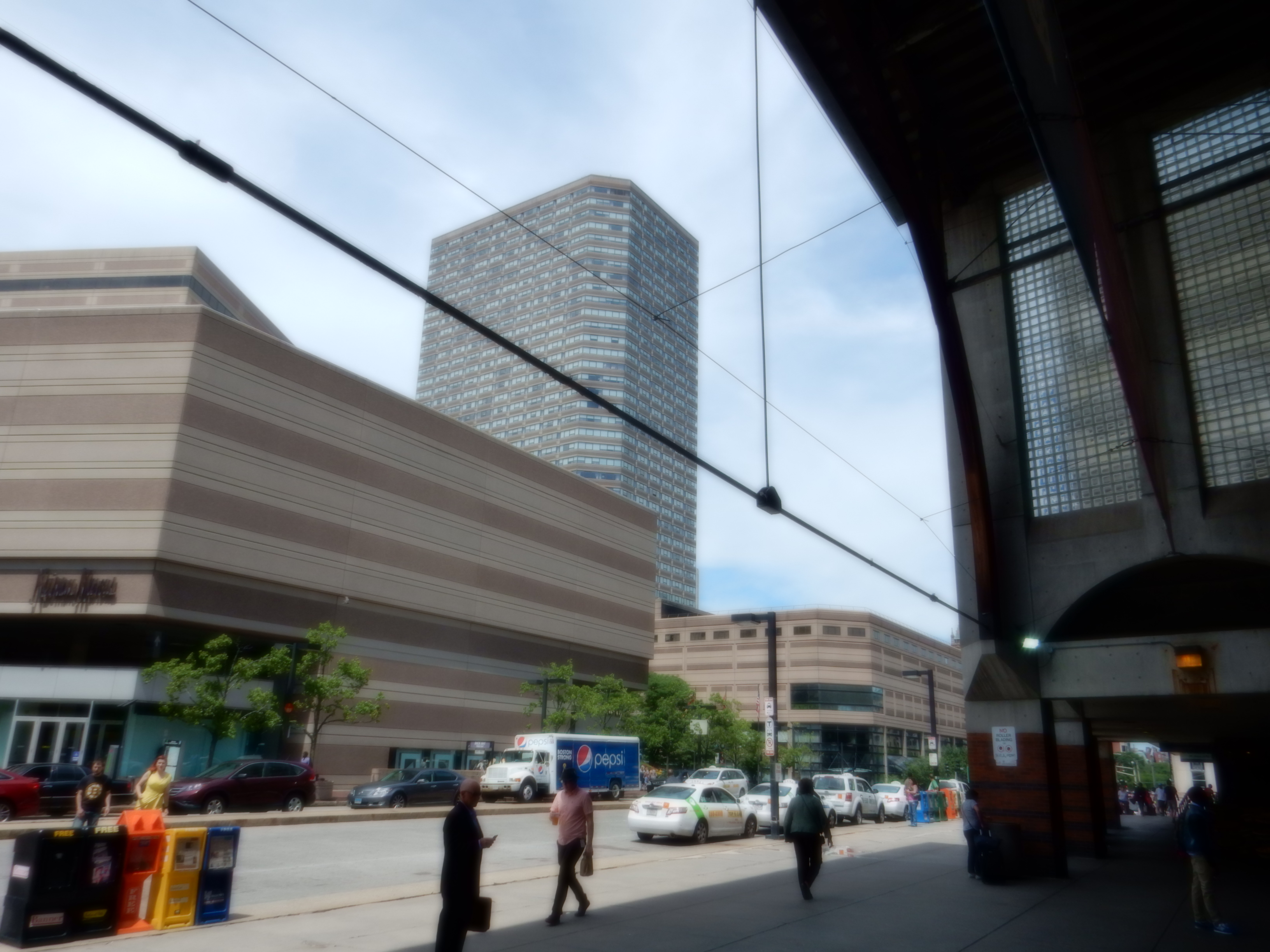 When you arrive at the Back Bay station of the MBTA (and the T) you emerge onto Dartmouth Street and head toward Copley Square. Before you turn down Stuart Street to the Traditional Building Conference you behold this stretch, above, of classical buildings that bookend Boylston Street at Dartmouth. But first you must behold a far less edifying stretch of facades, below, that represents one end, the dominant end today, of the arc of architecture. Boston’s beauty is marred by such juxtapositions. For example, take another. Peer down Huntington Avenue from Dartmouth, through the Copley Place complex and its associated modernist mash, almost a sinister experience, whereas to stand at the corner of the Copley Plaza Hotel’s al-fresco scene – merely looking in the opposite direction – is to behold a vision that takes your eye from the hotel itself, sweeping with joy across Copley Square and then back down to Richardson’s Trinity Church (whose tower was done by Charles Follen McKim before he started his own firm). In short, your eye travels from hell to heaven. Of course, the Hancock Tower obtrudes. And there are enough other obtrusions – the hyper-modernist garage structure that hovers ominously, with its concrete tower, over the entry to the Boston Common Hotel as you enter the conference – to make you wonder at the sanity of the city over the past several decades. It could have been so easy to continue to build architecture that represents beauty rather than ideology.