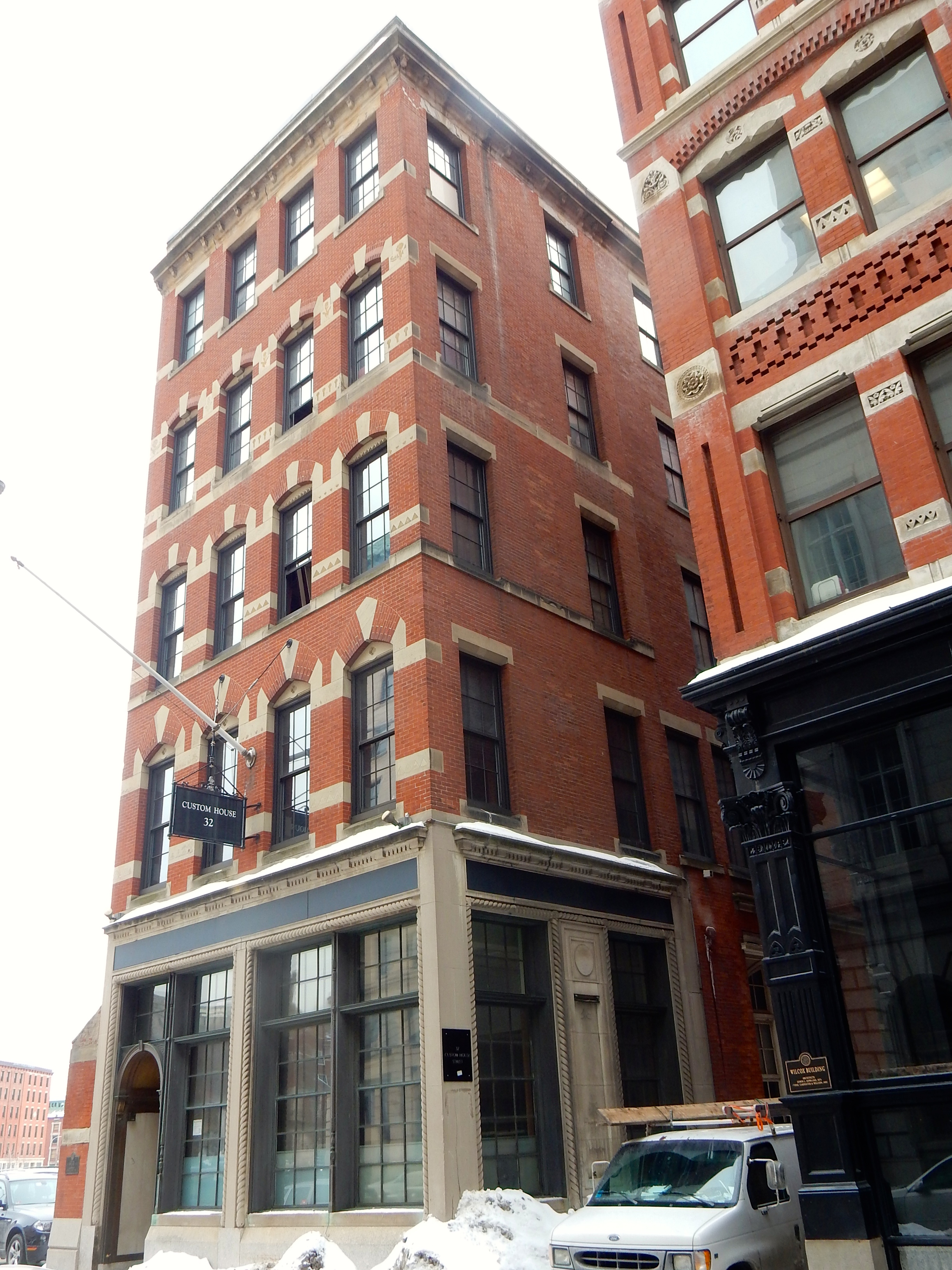 Monday evening’s meeting of the Downtown Design Review Committee relieved concerns that one must feel upon news that a graceful old building is being renovated. Who knows what evil could be afoot. But the applicant, HM Ventures 7, of Brooklyn, seems to have only good things in mind, more restoration than renovation outside. The building at 32 Custom House St., built in 1875 and known as the Real Estate Title Insurance Building, will host 10 apartments and a ground floor shop or restaurant. Bravo!