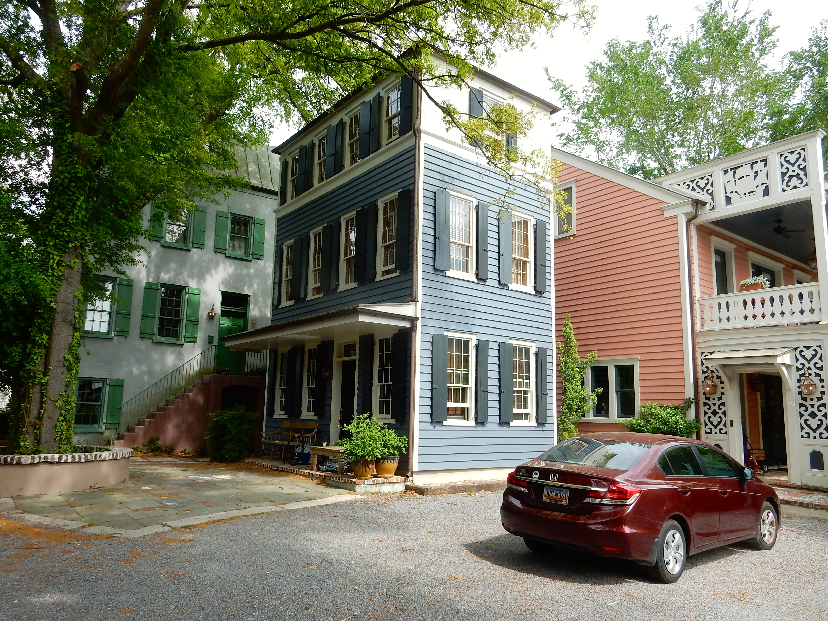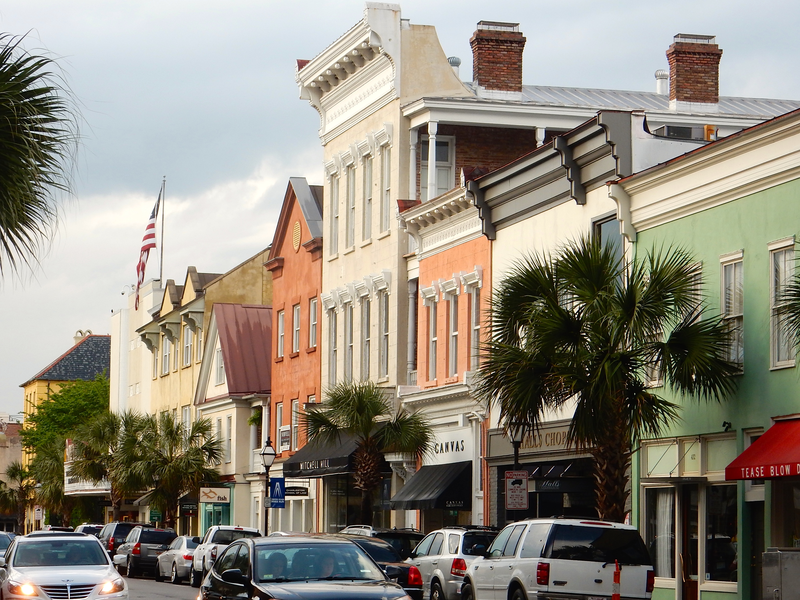Here are more than a few photos of Charleston. There are none of the city’s beautiful civic buildings on this post. Instead, I’ve tried to reveal the breadth of ornamental elegance in all of its 50 shades of great, from west of King to south of Broad. Toward the start are shots taken west of King, including a small neighborhood by Andrew Gould and George Holt. There are some dilapidated houses whose condition arises from a sensible policy of Mayor Riley’s against teardowns. Eventually they’ll be restored. There are a couple shots of the incredible campus of the College of Charleston, then we wander down south of Broad, where the livin’ is easy – even if it’s tough to find a grocery. Then some shots of commercial architecture, mostly on King. At the end is a video shot from a pedicab heading down King. Please enjoy.