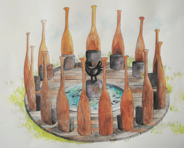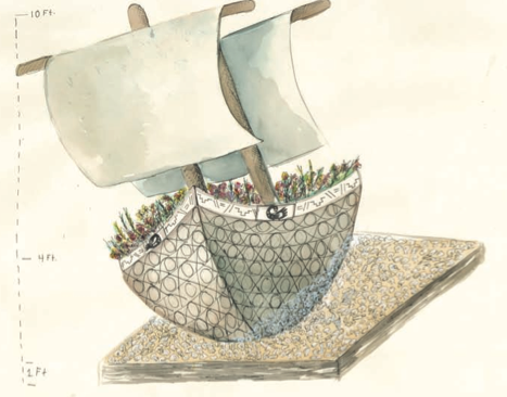 - “Gathering for the Journey,” by Charlotte Ball, Jillian Dowdy and Naomi Edmondson – a pond that sits amid chairs backed by oars;