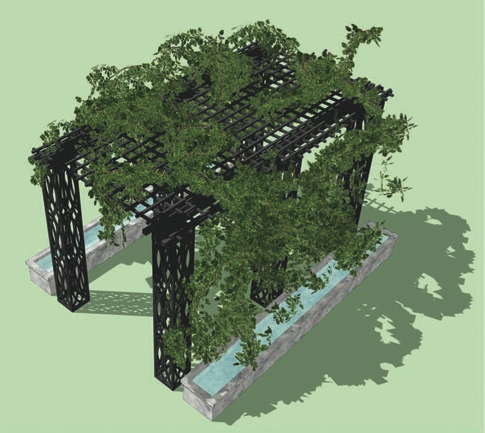 - “The Indomitable Spirit Passsage,” by James Coulter, Stephanie Greene and Sara Mosteller – a leafy pergola trellis of iron;