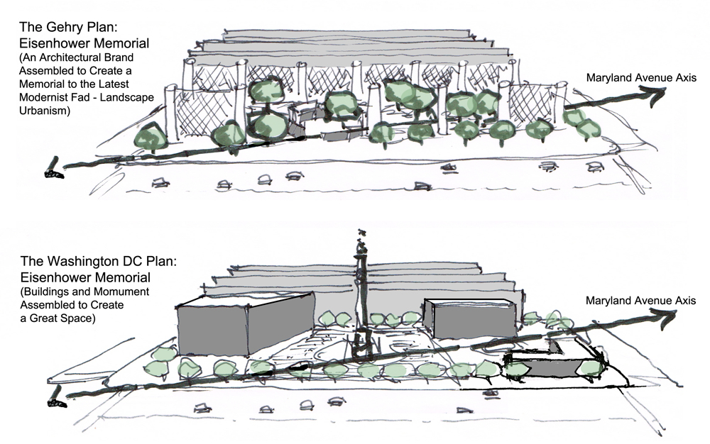 Roll Call, the newspaper of Capitol Hill, has a detailed report out on the situation facing the proposed memorial for Dwight Eisenhower designed by Frank Gehry. “House Appropriators Call for ‘Reset’ on Eisenhower Memorial Plans” paints a picture of a memorial process in disarray, and a memorial proposal on death’s doorstep, but a memorial commission still desperately clinging to funds for its staff.