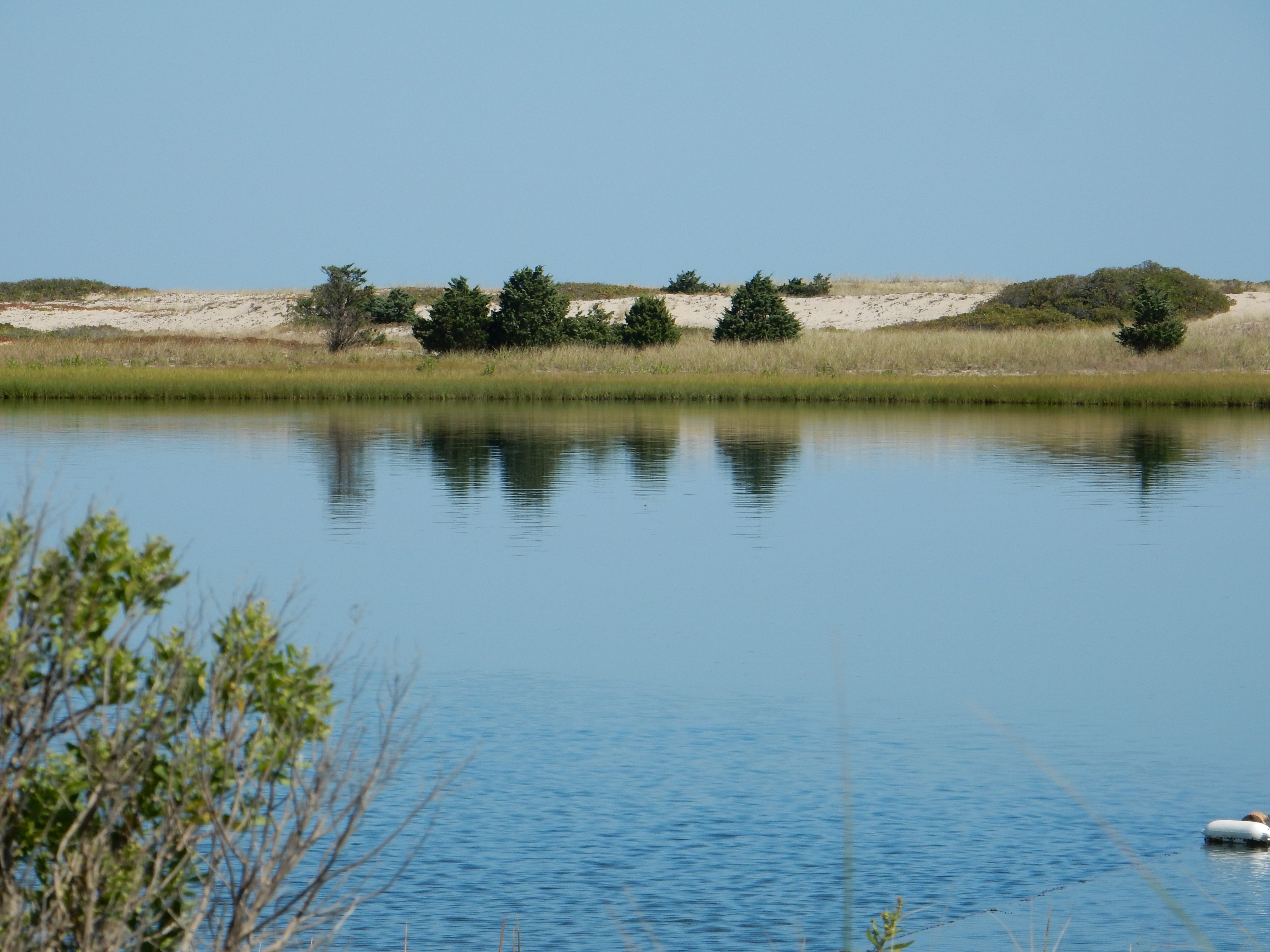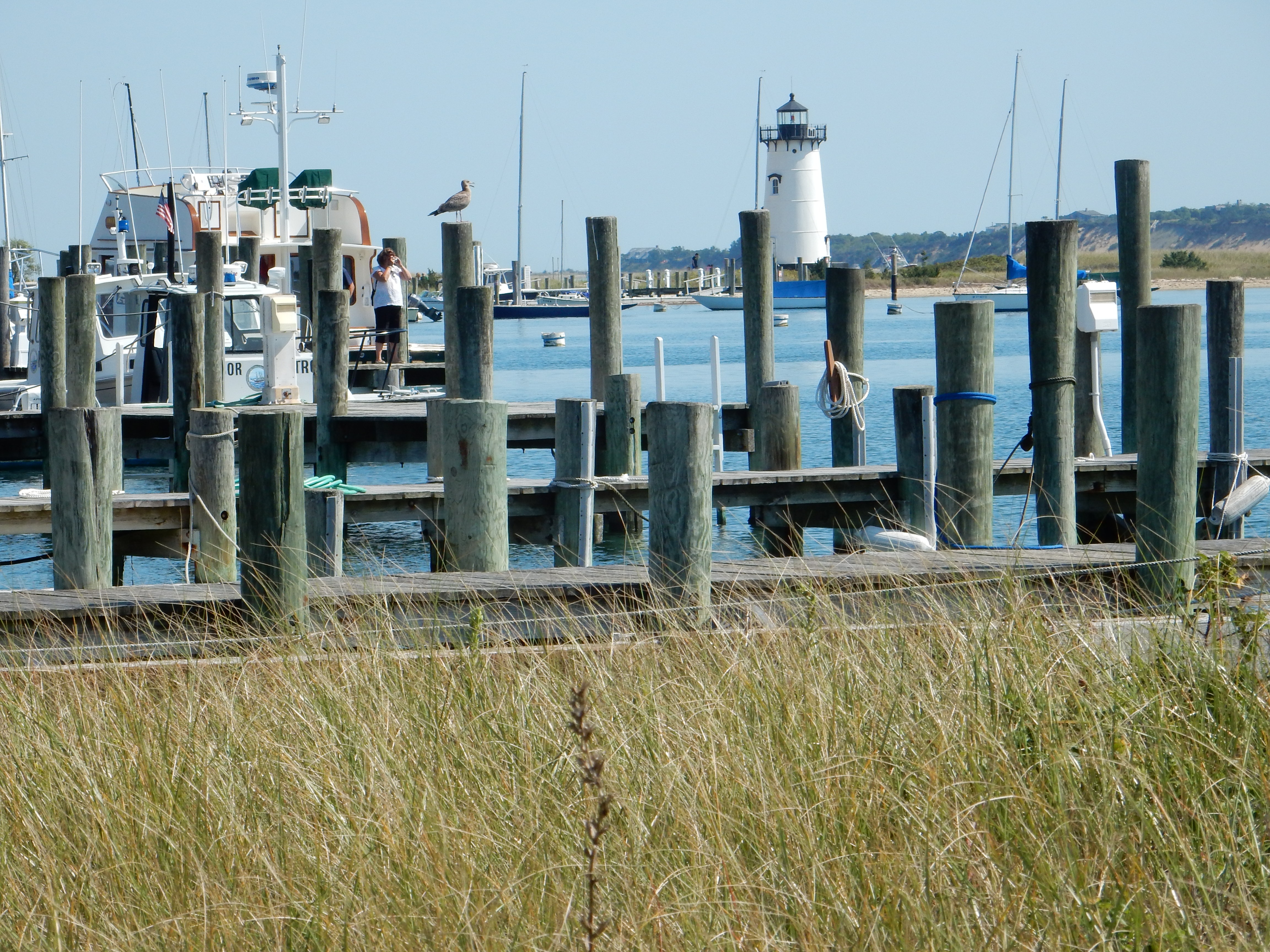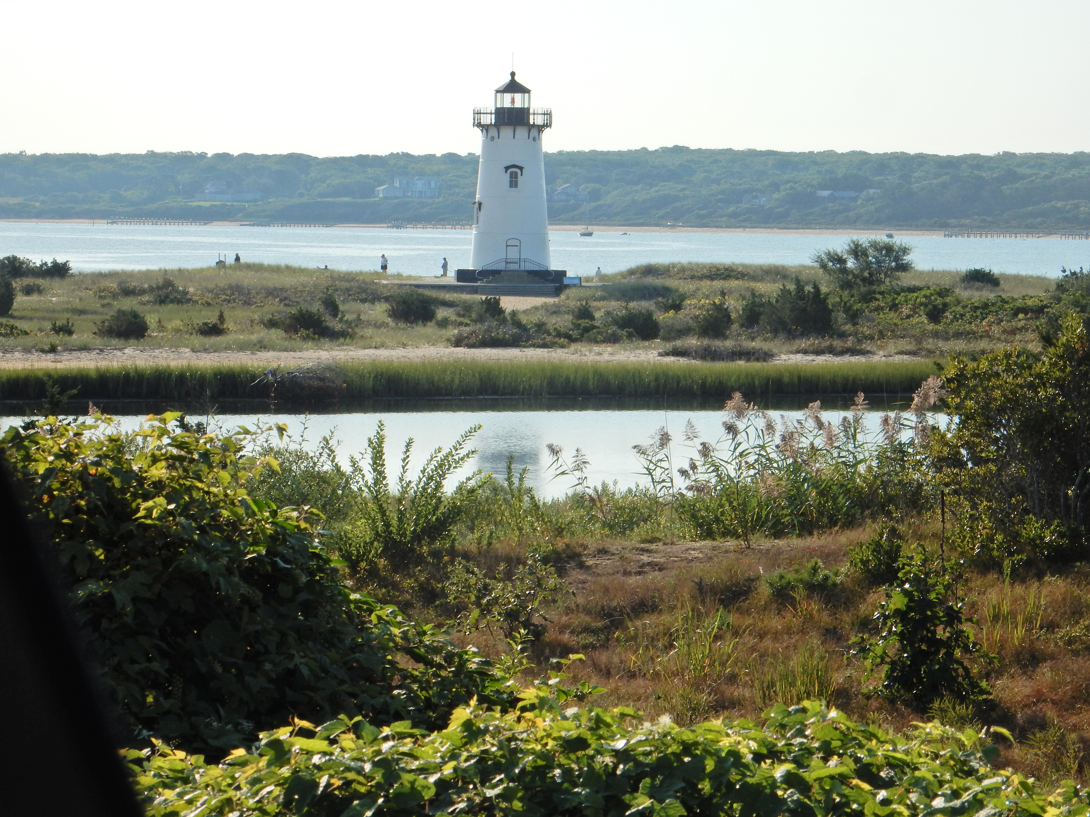 I took the ferry from Woods Hole, drove around with Steve, dined in the lap of luxury (or its bar) at the Atlantic, walked into Edgartown in the morning to have breakfast and take pictures, took the Chappy ferry over to see the sights of Chappaquiddick (including the infamous bridge and the beach where Steve got married, which has gone in and out of existence over the years – storms, erosion, etc.)