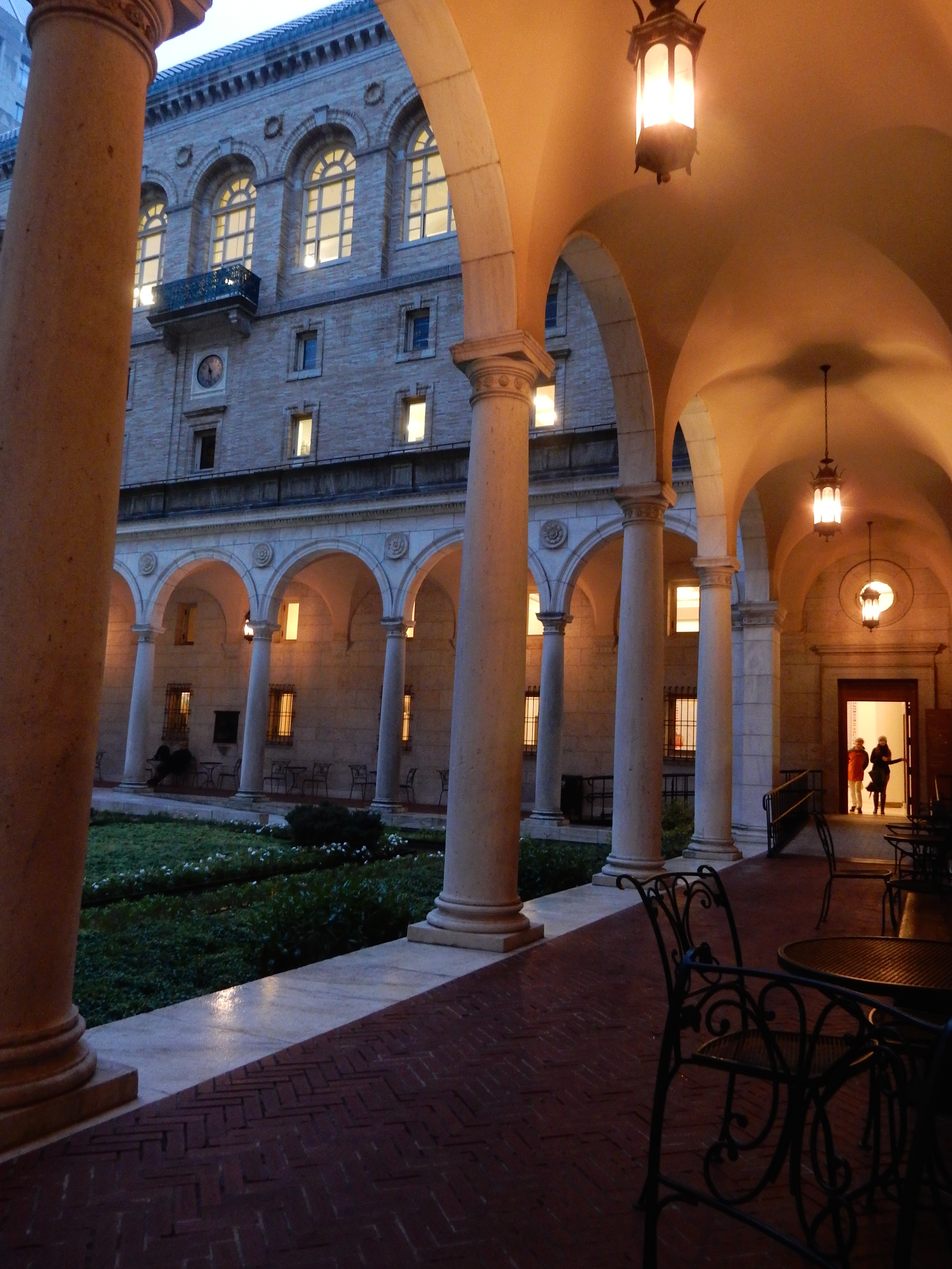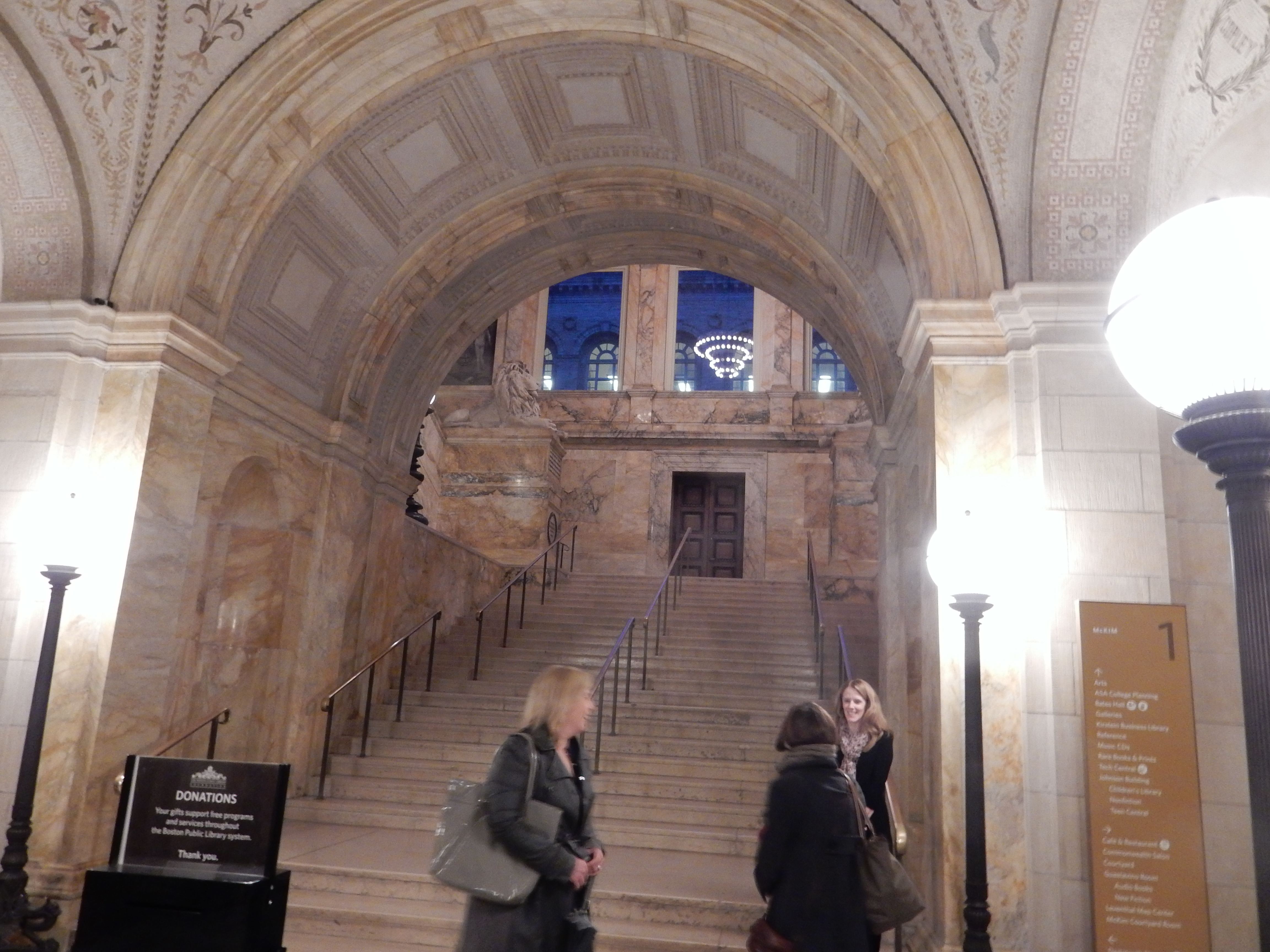 Took the MBTA up to Boston yesterday evening to a meeting of the New England chapter of the Institute of Classical Architecture and Art. After emerging from the Back Bay stop into Dartmouth Street, there is always the difficult choice (since my train usually arrives a bit early) whether to waste time at the Copley Plaza or at the Boston Public Library. The beauty of the library, designed by Charles Follen McKim, may be said to engage in its own sort of advocacy. It won me over, this evening at least.