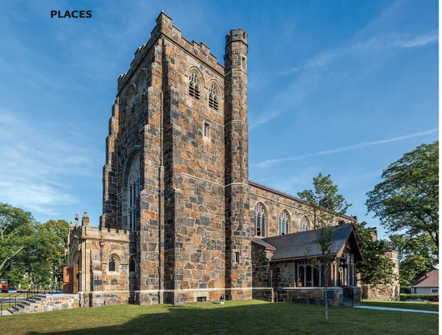 The piece describes how the church’s restoration was accomplished without “spoiling its well-worn patina.” The description of that process is interesting, and is followed by an even more intriguing passage: