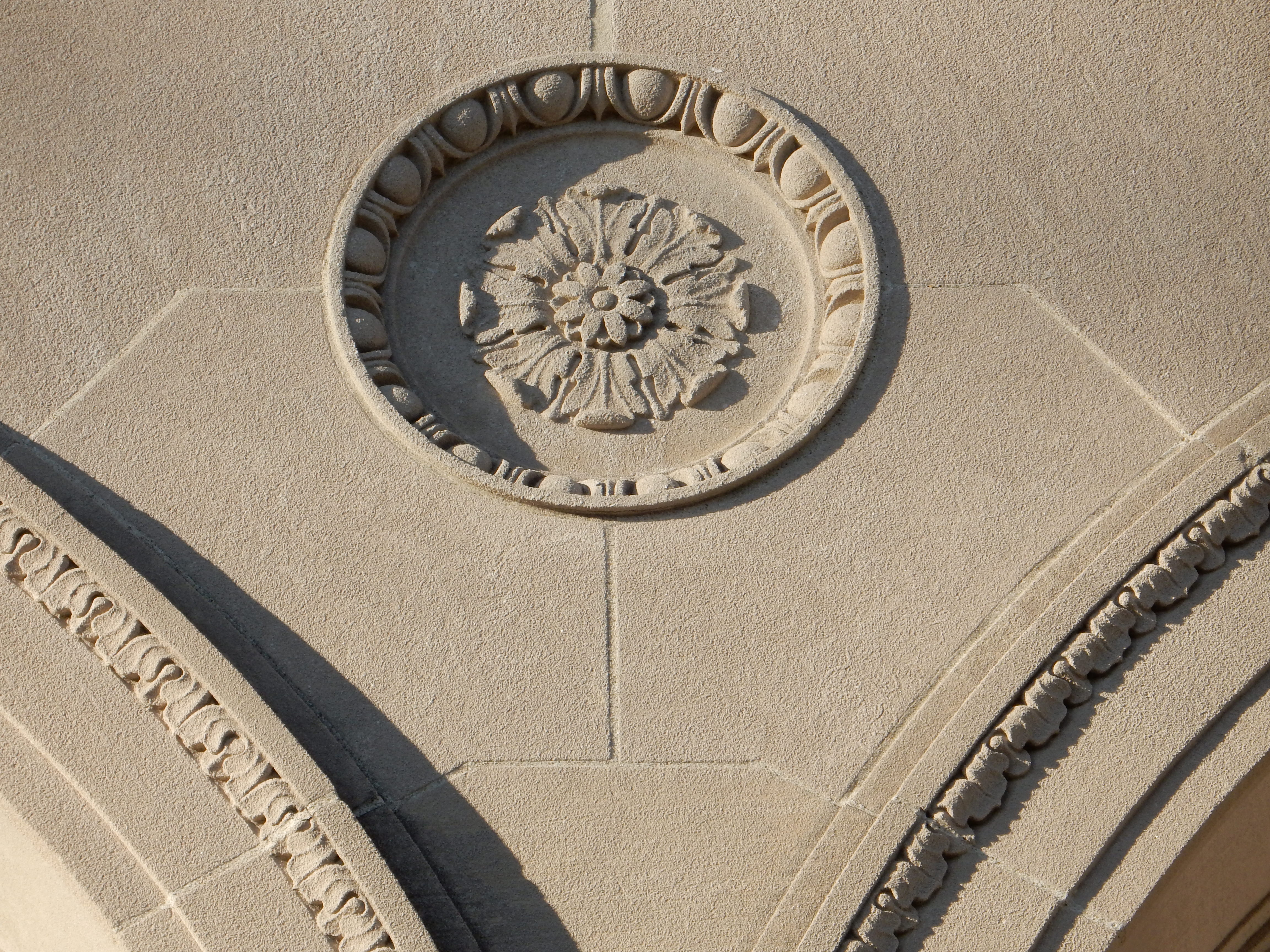 The limestone edifice on a base of granite sits gently upon its landscape. Its delicate ornament displays the talent of architect Hall in using the classical tool box to articulate by way of shadow the sun’s course of travel hour by hour along the raiment of its embellishment.