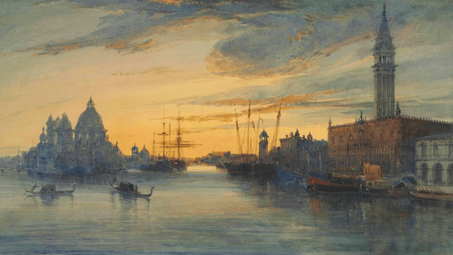 Watercolor of Venice by James Holland. Are the buildings inked in first? (Mario A. Pita)