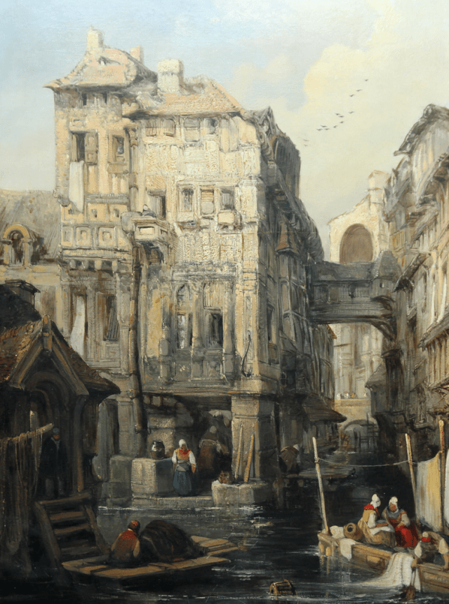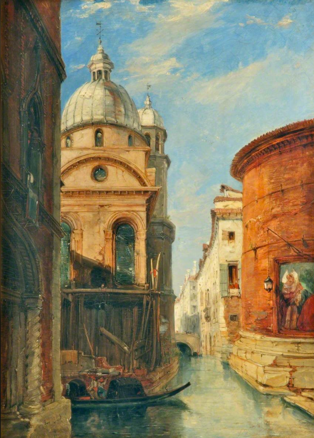 My wife, Victoria, sent me a Facebook post by Mario A. Pita, a son of Cuban refugees who resides in Arlington, Va., and who enjoys posting artists’ work on their birthdays. The birthday of watercolorist James Holland (1799-1870) fell just as I was conceiving a series of posts on architectural drafting tools and their disappearance from the market, but so far I’m not sure any of my subjects until now (“Phiz” and “Antiquity Smith”) used drafting tools in their work. As for James Holland, the Englishman appears to have used drafting tools, but I remain unsure. Painting architecture is not the same as painting nature or humans. Either he used drafting tools to outline the buildings first, or he had good eye for a straight line and the virtuosity of a curve.