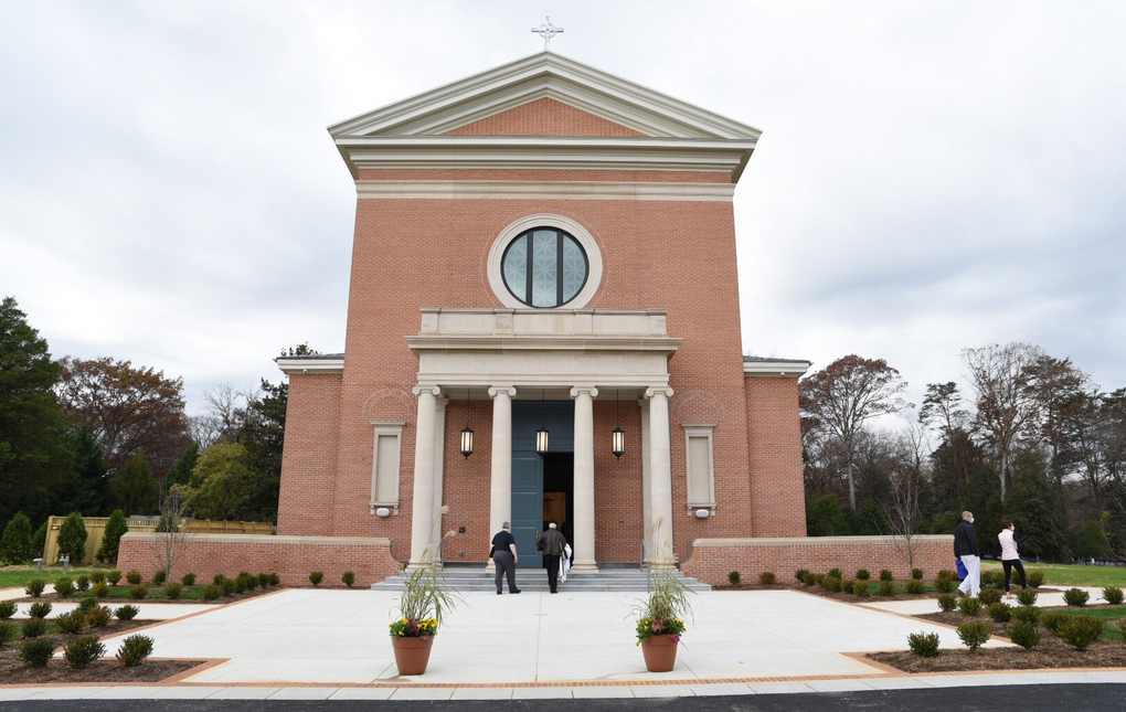 The new church in Fairfax, Va., for historic St. Mary of Sorrows, built around the congregation’s original tabernacle, was designed by McCrery Architects and dedicated last Nov. 15. The stained glass windows, created by Beyer Studio, to be installed above the church’s alter, represent the seven sorrows of Mary.