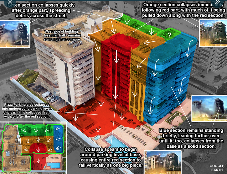 Architects Journal looks at potential causes of the collapse and offers a diagram (below) tracing the order in which different sections of the building collapsed.