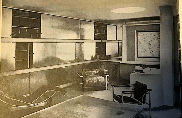 This and other little details – such as the cylindrical pillow strapped to the head of the reclining chair – make these just about the wittiest, sexiest chairs designed in modern times. The fact is, of course, that much modern steel furniture does tend to look a little grim; all of us who solemnly assert that we like it do so because we think we ought to like it since it “makes sense.” To a Frenchman this is a perfectly silly argument; he would never think of making love to a “nice, sensible girl” as an Englishman might, or to a potentially “good mother” as a German would. Corbu’s chairs are rather like expensive tarts: elegant, funny, sexy, and not particularly sensible. Nobody has improved upon them [the furniture, not the tarts, the reader must assume] to date.