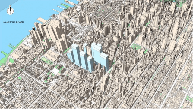 With negligible warning from the project description, projecting the likely look of these behemoths nevertheless requires little more than your impression of the city’s two latest large development projects: Ground Zero and Hudson Yards. No doubt the dominant style of skyscrapers in the Empire Station Complex would follow these patterns, because the same firms that designed the glass canyons at both locations will be asked to submit requests for proposals that fit the latest architectural trends. If anything, perhaps we may expect the ten towers to be dumbed down from the more abstract chaos of the two supposed exemplars.