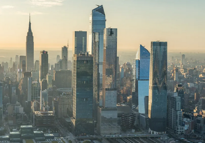 Hudson Yards, Empire State Building, left, Madison Square Garden, center left. (Curbed NY)