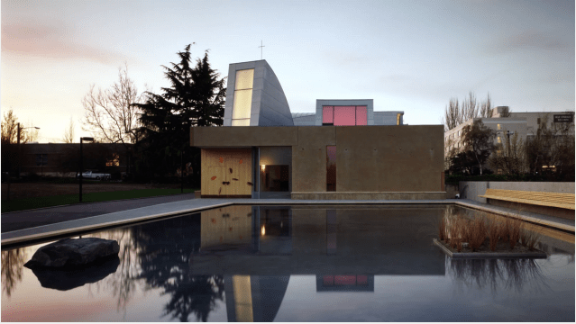 The chapel above has just received the 25 Year Award for 2022, bestowed each year by the American Institute of Architects for the building that, according to the AIA, “sets a precedent” and “has stood the test of time for 25-35 years.” Completed in 1997 by Steven Holl Architects, St. Ignatius, on the campus of Seattle University, just made it under the wire.