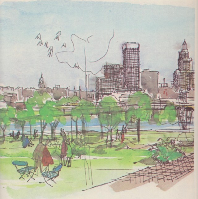 And while the Interface plan certainly has a “feel” congenial to those who consider the city’s historic architecture to be among its most important advantages, that quote is about the closest it comes to commenting on matters of architectural design. Because we all know about urban renewal and the towering sterility to which the words refer. And Rhode Islanders of that day – more than forty years ago now [in 2017] – had had these connotations pounded into them by a pair of earlier civic plans astonishing in their insensitivity to the city’s architectural heritage.